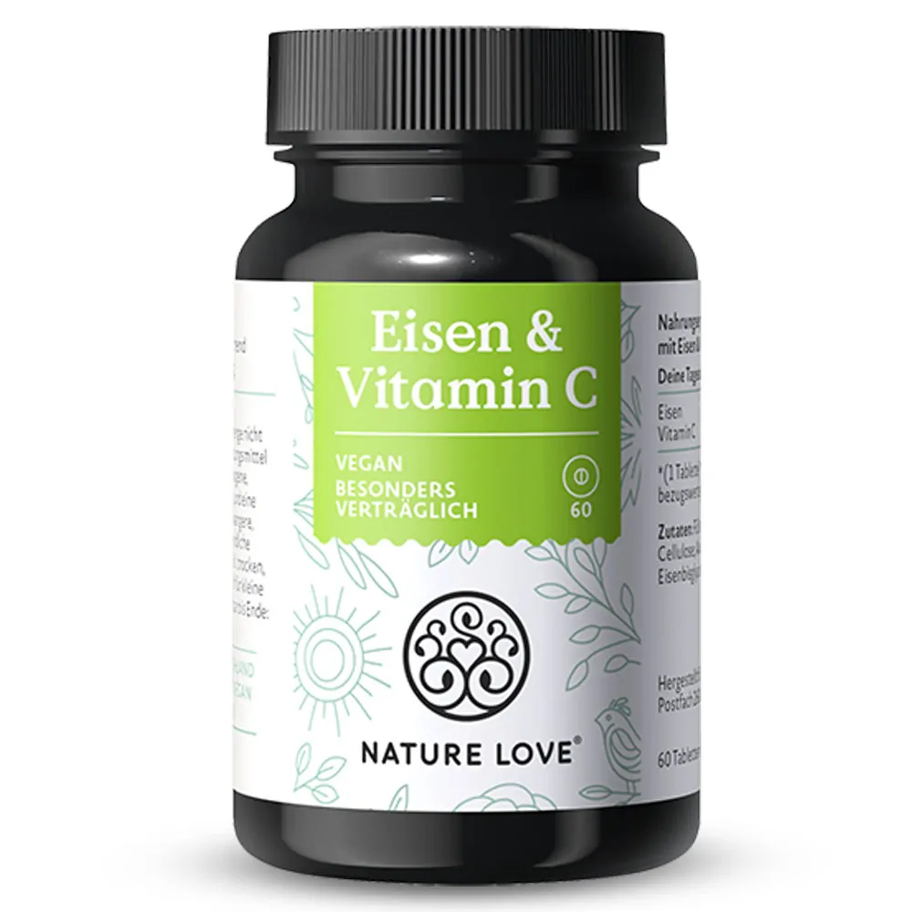 Железен бисглицинат 20 mg с Витамин C от Nature Love® осигурява високоефективна подкрепа за нормалното кръвообразуване и енергийния метаболизъм. Желязото допринася за образуването на хемоглобин и оптималния транспорт на кислород, като спомага за намаляване на умората и отпадналостта. Добавеният Витамин C от ацерола повишава усвояването на желязото и подкрепя имунната система. Формулата е щадяща за стомаха и подходяща за продължителен прием, включително при жени, вегани и хора с повишени нужди от желязо.