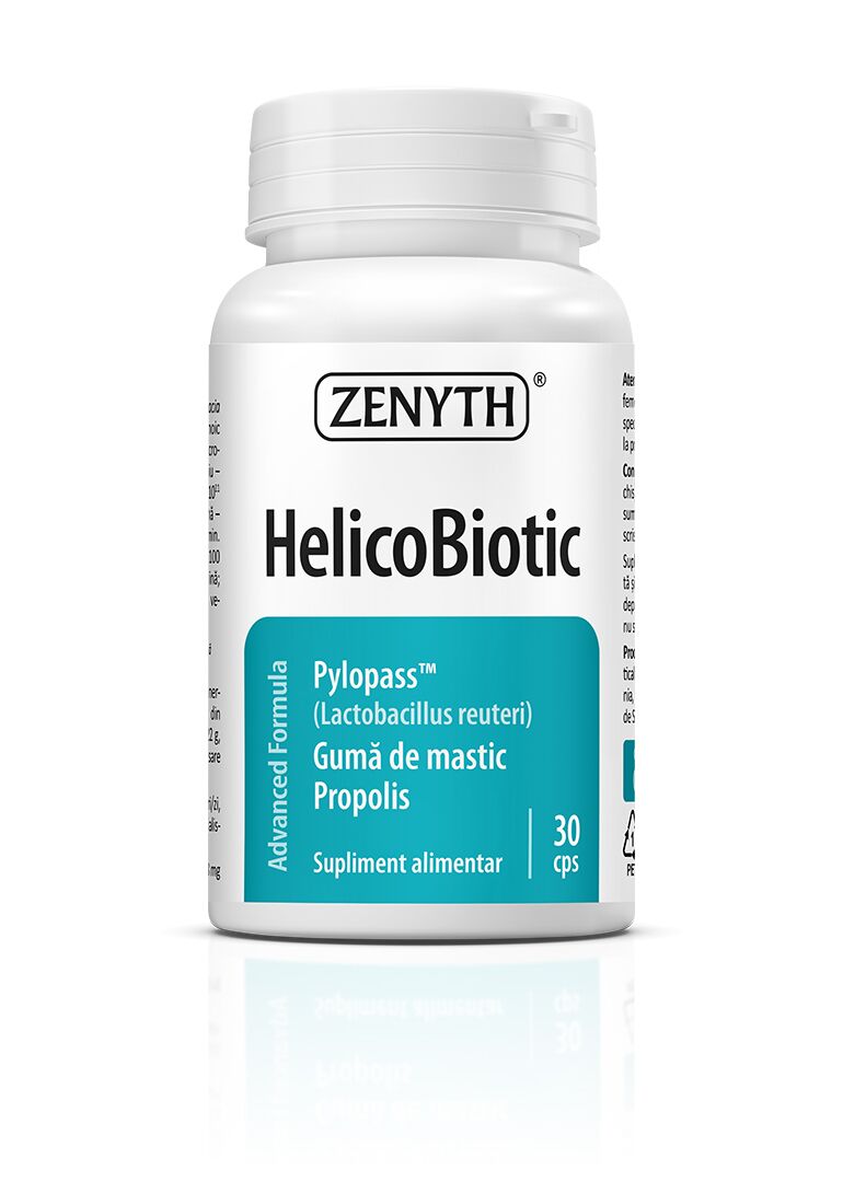 Хеликобиотик е комплексна формула, която помага в борбата с Хеликобактер пилори. Хеликобиотик защитава, заздравява и регенерира стомашната лигавица, справя се с гастро-езофагеалния рефлукс и халитозата. Изцяло натурален продукт с клинично доказано действие и троен ефект, благодарение на трите съставки, които работят синергично : Мастиха, Pylopass™( уникален патентован щам Limosilactobacillus reuteri * DSM 17648) и прополис.